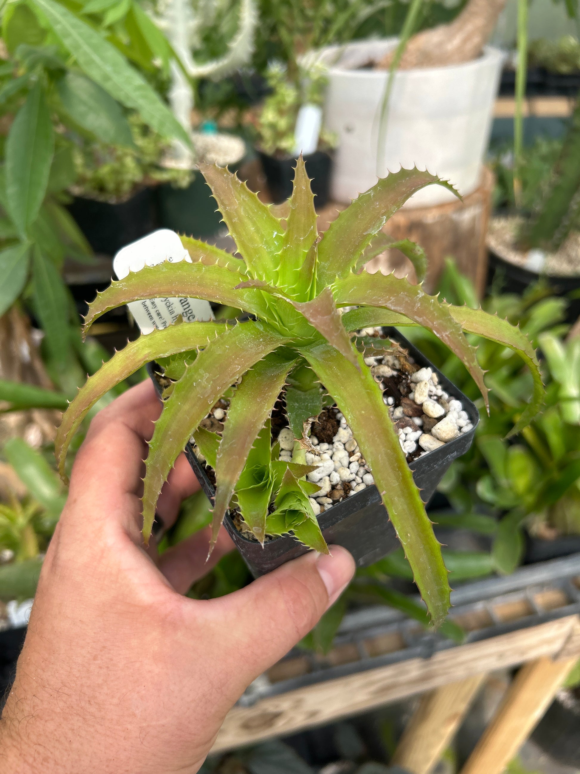 4” pot of this beautiful terrestrial bromeliad. Stresses a rich orange color. Grower’s choice.
