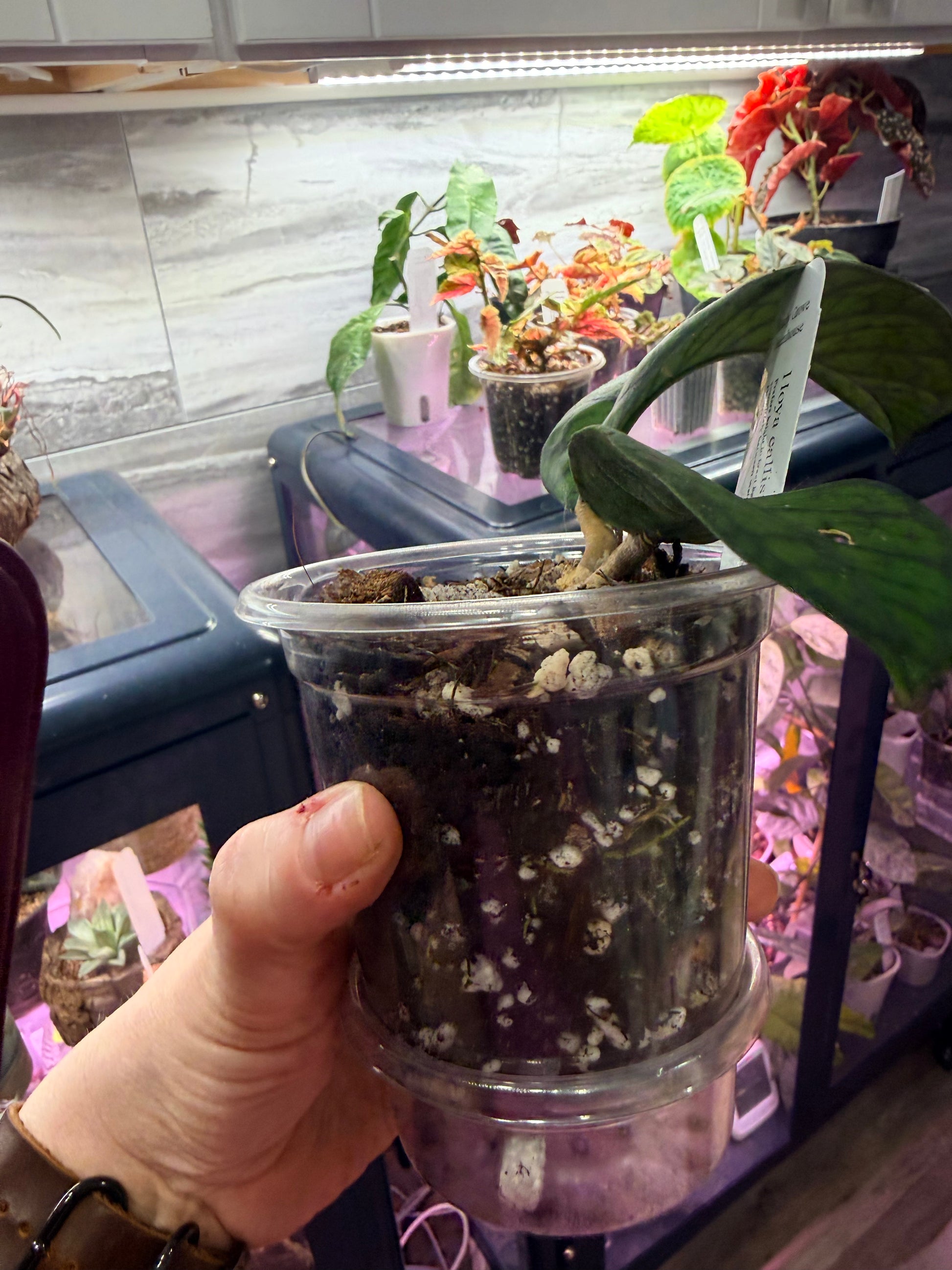 Callistophylla Obsidian fully rooted in self watering pot. Grown in chunky mix.
