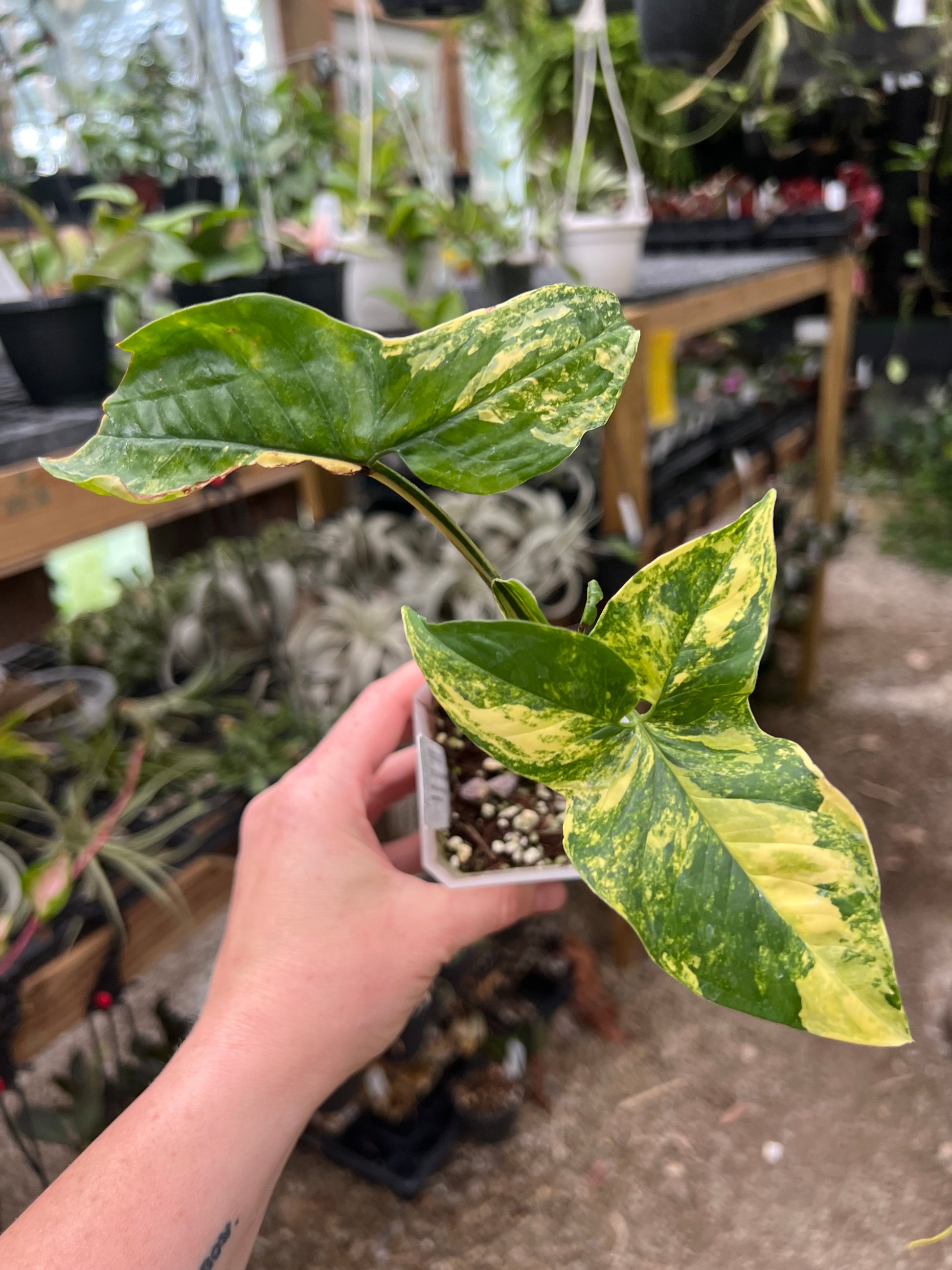 Syngonium Aurea in 2”pot. Exact Plant. Beautiful variegation! *Note older leaf damage
