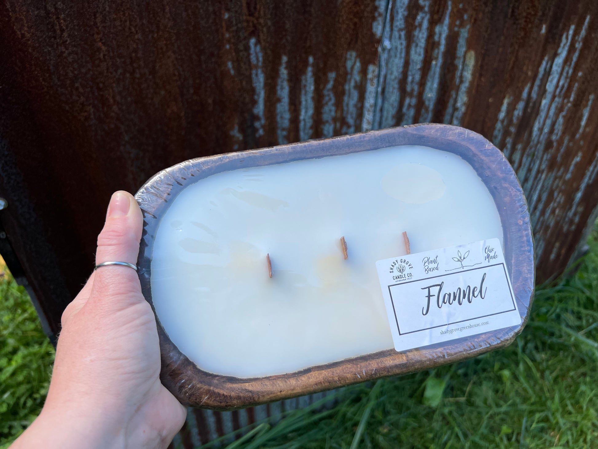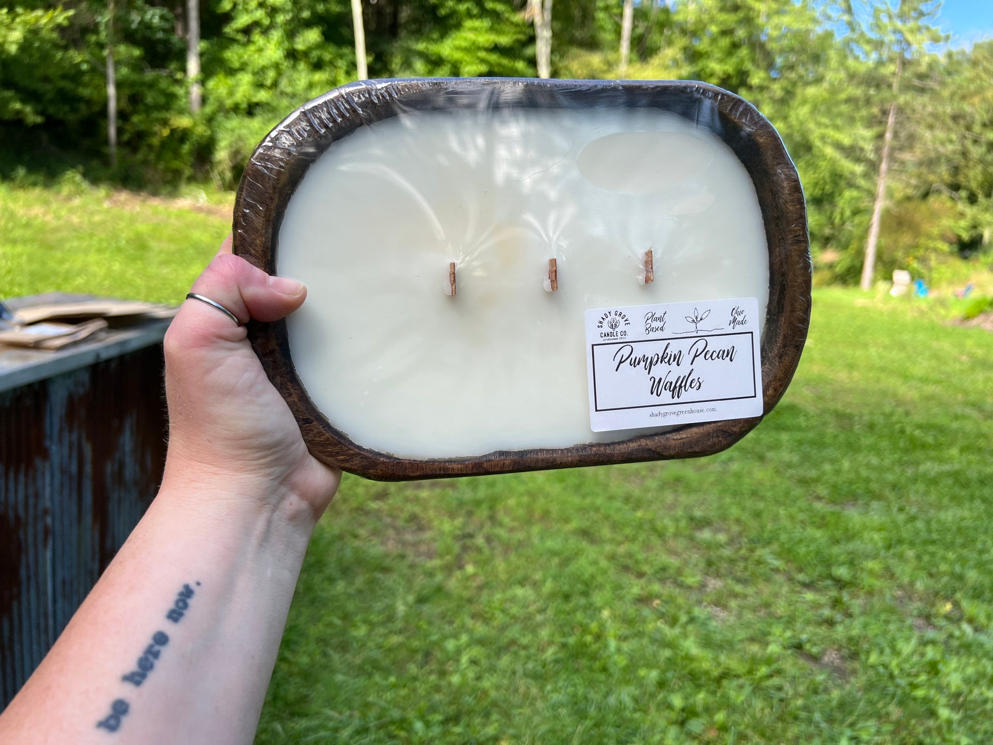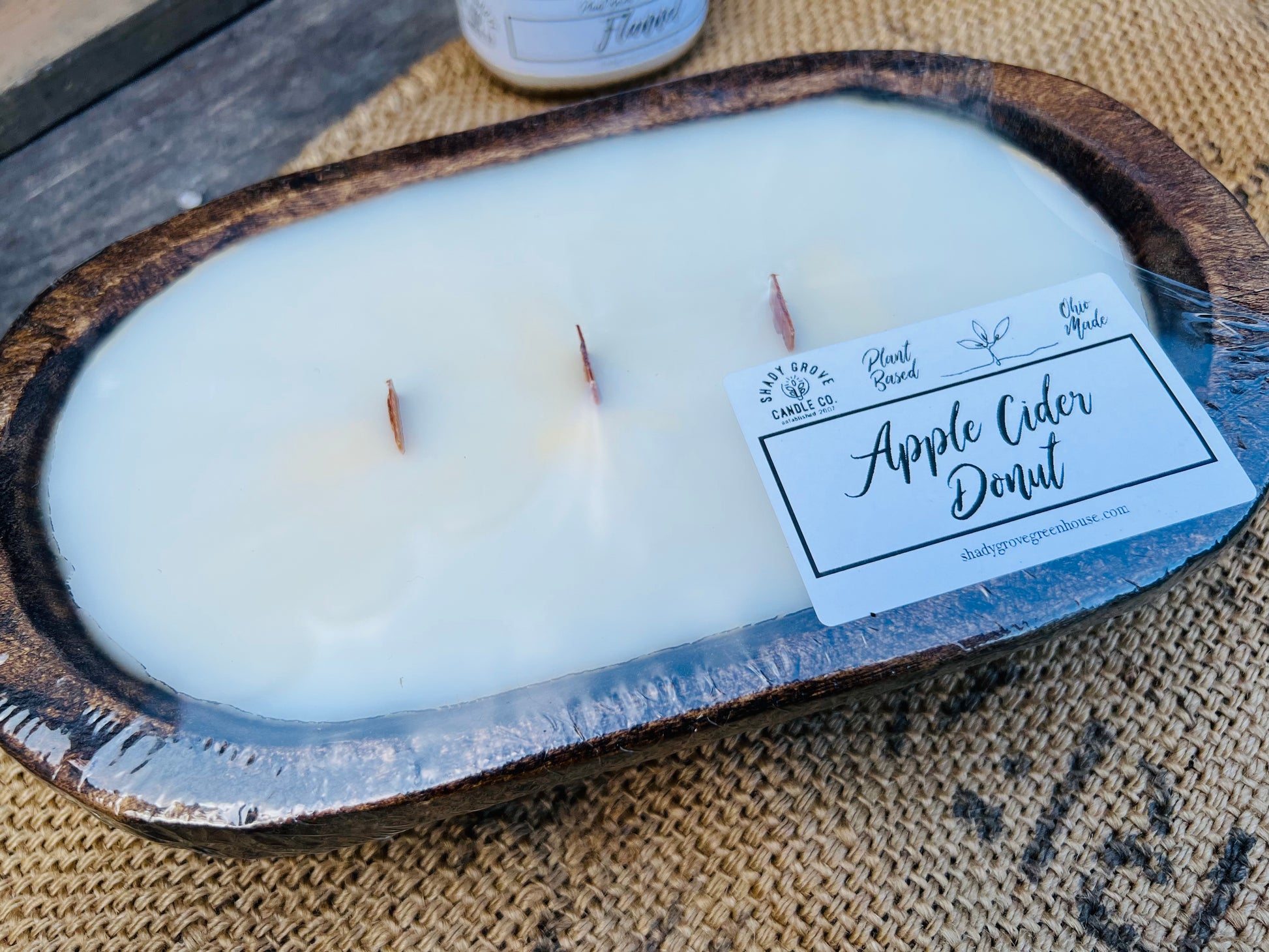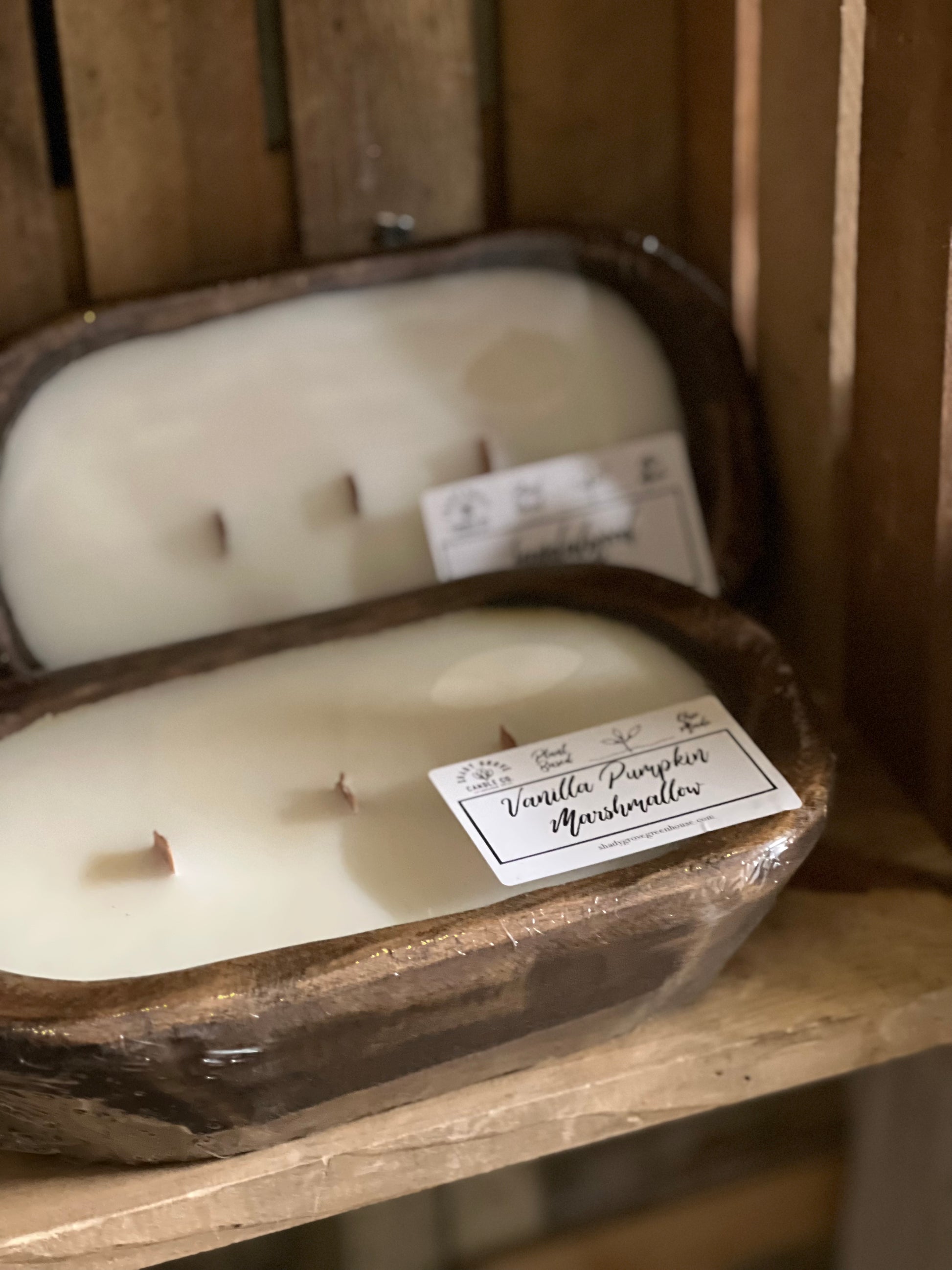 Our wooden wick dough bowl is by far the best seller! Plant-based, hand-poured, and clean burning!