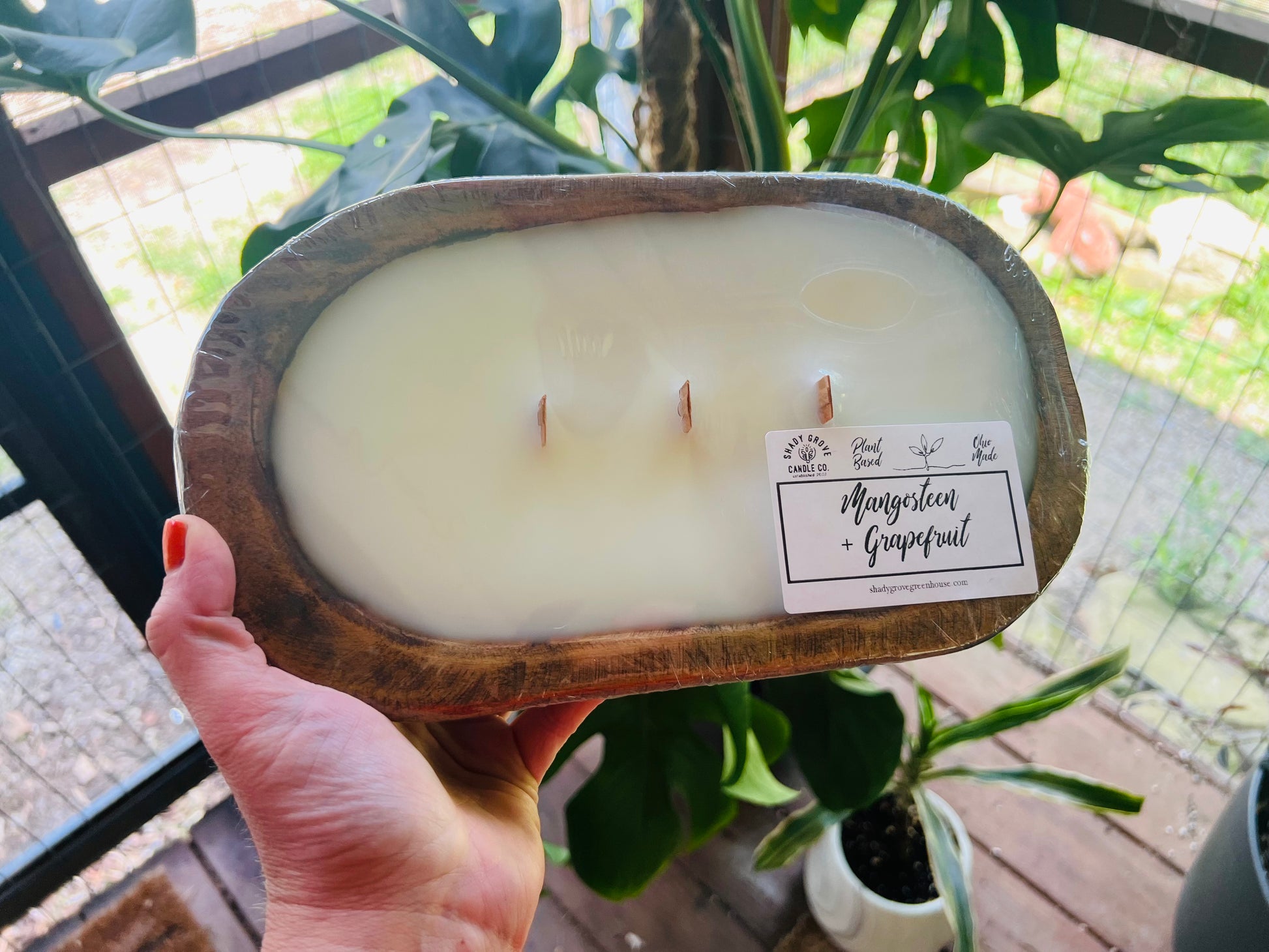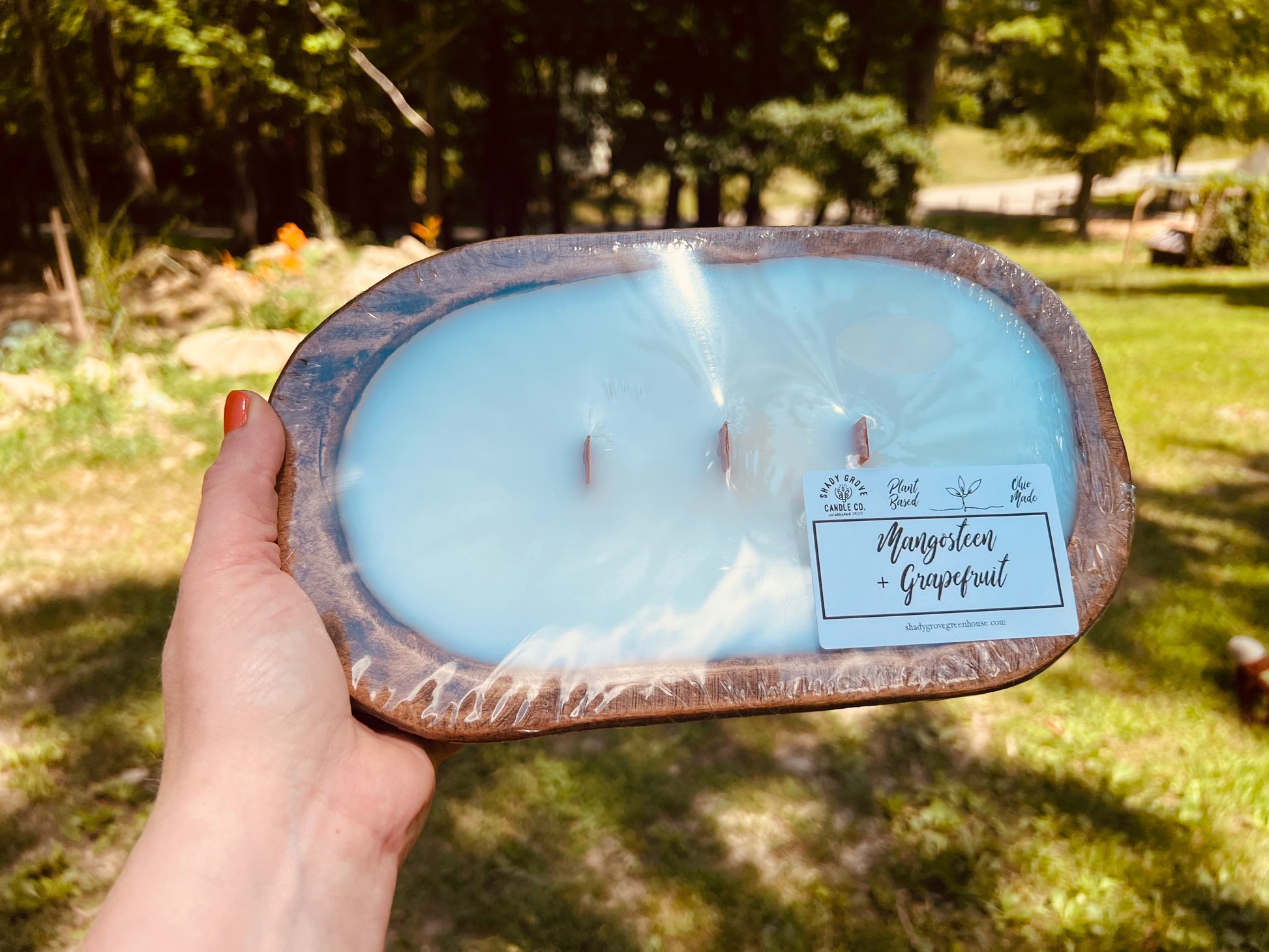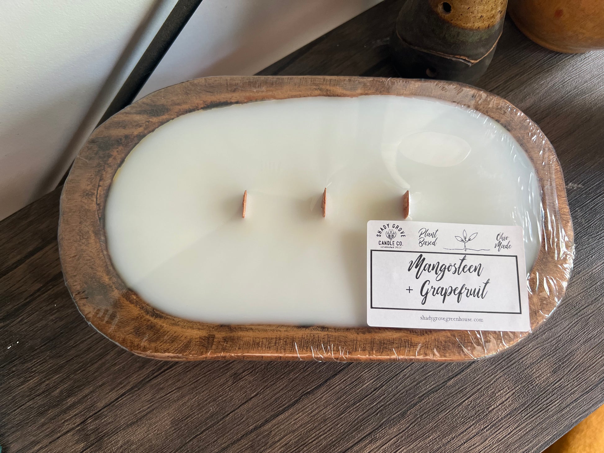 Dough bowls measure approximately 1.5-2” deep x 5-6” wide x 9-10”long and contain 1-2 lbs of wax.